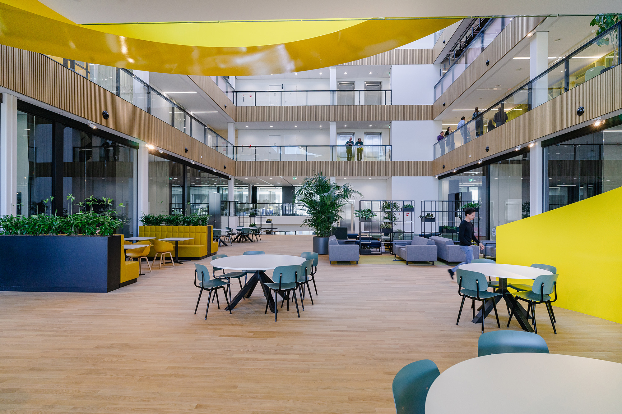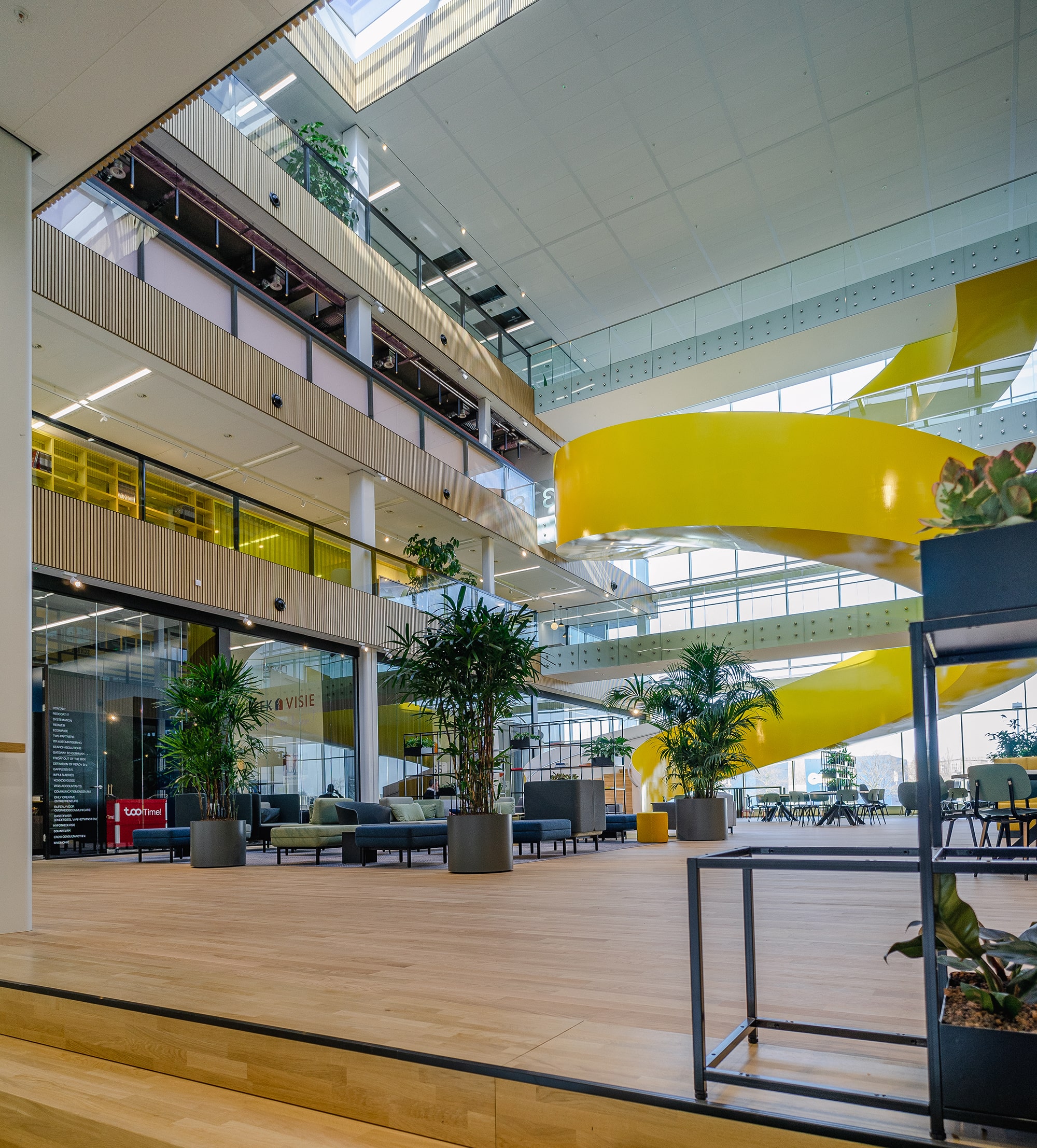 Kenmerkend voor het gebouw zijn de verhoogde plint, het centrale atrium en een separate patio die dient als beschutte buitenruimte. De spiraalvormige trap in het atrium – zichtbaar vanaf de snelweg – is het hart van het gebouw en maakt het DNA van het ontwerp uit: beweging en daarmee gezond werken worden hiermee gestimuleerd. Daarnaast zorgt de trap voor een gevoel van verbondenheid tussen de medewerkers van de verschillende bedrijven die hier werken. Het gebouw bestaat uit vier kantoorlagen en twee parkeerlagen (onder het gebouw) met ruimte voor circa 150 parkeerplaatsen. Kenmerkend voor het gebouw zijn de verhoogde plint, het centrale atrium en een separate patio die dient als beschutte buitenruimte. De spiraalvormige trap in het atrium – zichtbaar vanaf de snelweg – is het hart van het gebouw en maakt het DNA van het ontwerp uit: beweging en daarmee gezond werken worden hiermee gestimuleerd. Daarnaast zorgt de trap voor een gevoel van verbondenheid tussen de medewerkers van de verschillende bedrijven die hier werken. Het gebouw bestaat uit vier kantoorlagen en twee parkeerlagen (onder het gebouw) met ruimte voor circa 150 parkeerplaatsen.
