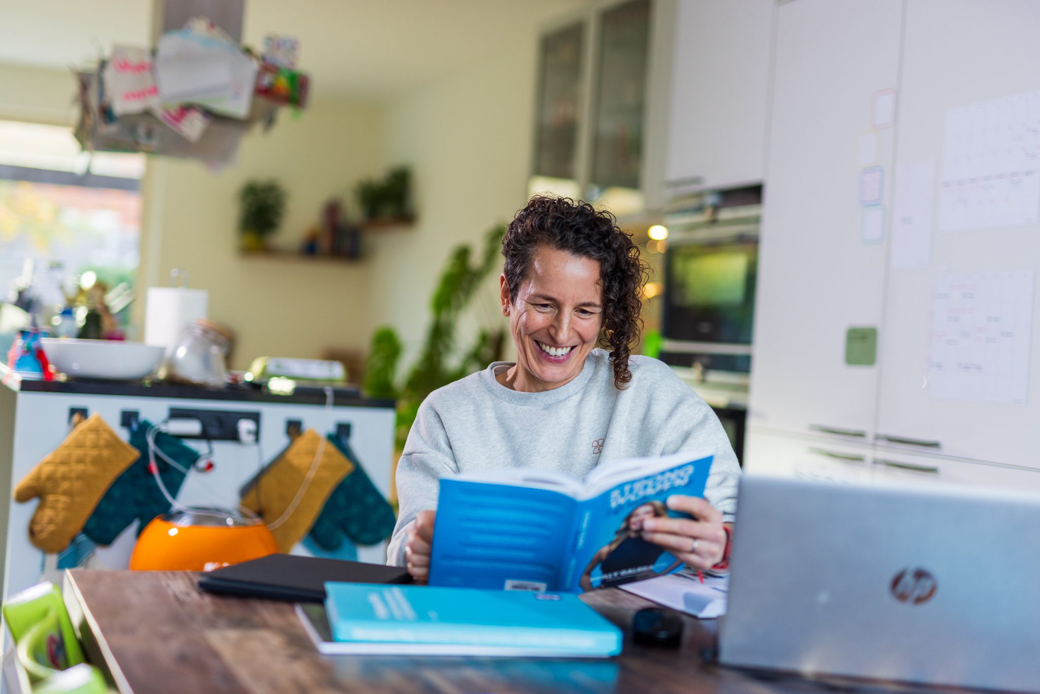 Sabina werkt nog drie dagen per week: “Ik coach veel mensen met burn-out. Het is een mooi vak, want iedereen heeft weer een ander verhaal.” Het huis heeft ook een werkruimte voor Sabina’s coachingpraktijk. Hugo: “Dat was een van de unique selling points voor ons.” Sabina: “Daarnaast vonden we de oude stijl mooi en het is een nul-op-de-meter-woning. Dat is fantastisch. We zijn heel blij dat we deze stap hebben gezet. Het is een fijn huis en een leuke wijk.”