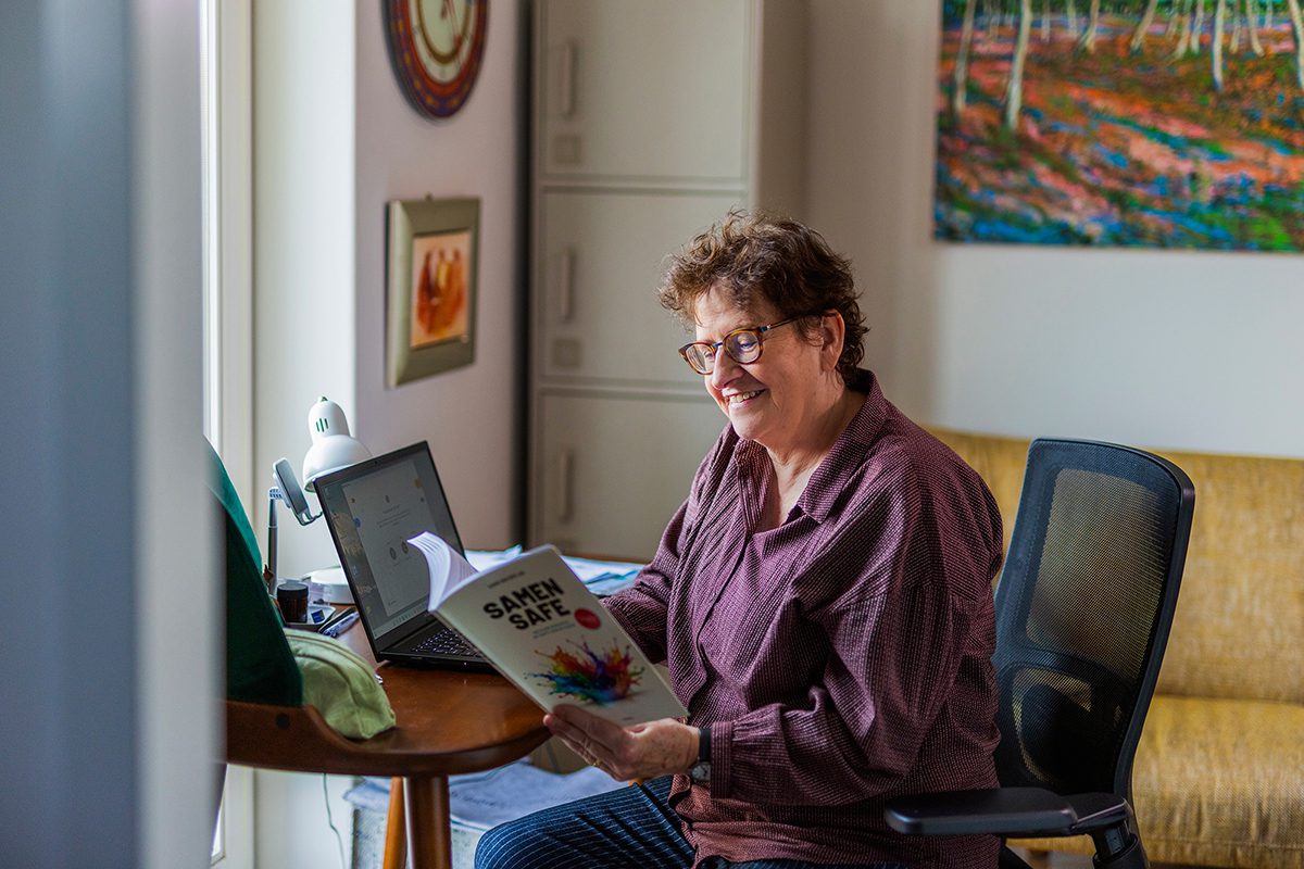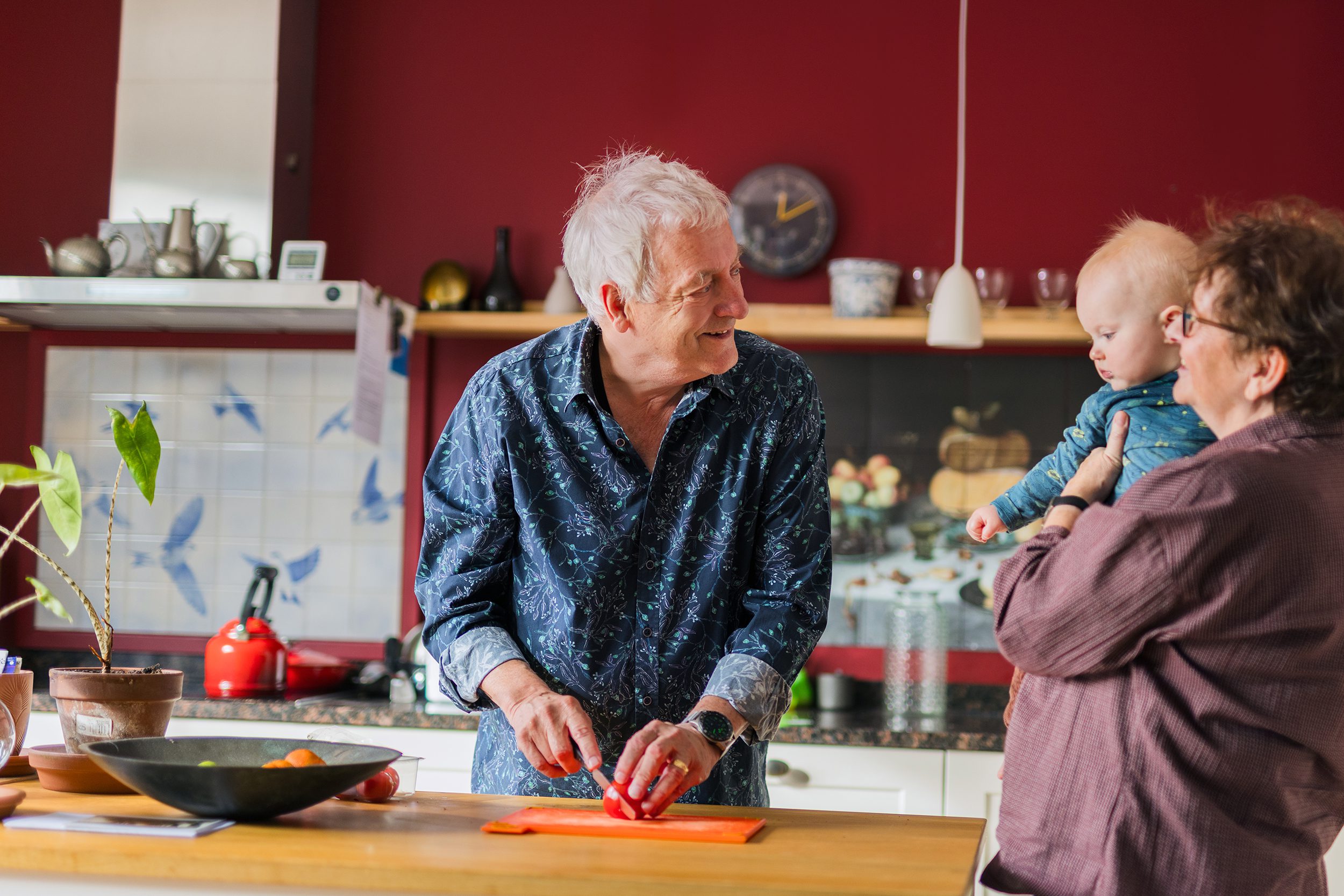 Sabina en Hugo wonen bijna zes jaar in Schoemaker Plantage en passen op kleinzoon Bram. Sabina: “We hebben ieder al een leven achter de rug en hebben allebei twee zonen. Bram is het kind van mijn oudste zoon, ons eerste kleinkind.” Hugo en Sabina leerden elkaar kennen op het werk. “Hugo en ik waren collega’s bij de universiteit Leiden. Ik was manager en hij maakte onderwijsfilms. Mijn eerste man was overleden. Toen het na een verdrietige periode weer wat beter met me ging, zijn wij een keer uit eten gegaan. En toen werden we ineens verliefd. We kunnen heel goed lachen en praten met elkaar.” Hugo vult lachend aan: “We hebben nog nooit ruzie gehad. Tja, zij is een psycholoog hè.”